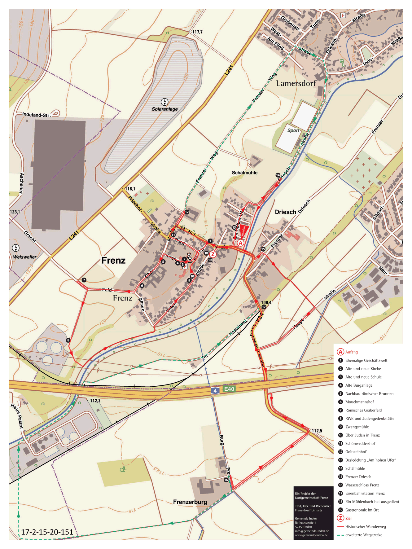 Der Rundweg in Frenz ist Teil eines Projektes der gesamten Gemeinde Inden, gefördert durch die „LAG Rheinisches Revier an Inde und Rur e.V.“ und unterstützt durch die Gemeinde Inden.