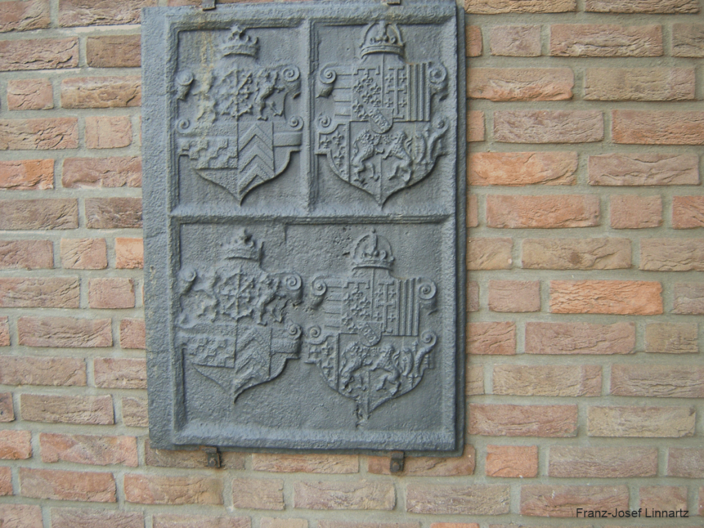 During the demolition work, a cast iron plate was found in the chimney, each with two identical coats of arms, which unfortunately could not be identified more closely. It is therefore unclear whether it is connected with the original owners.