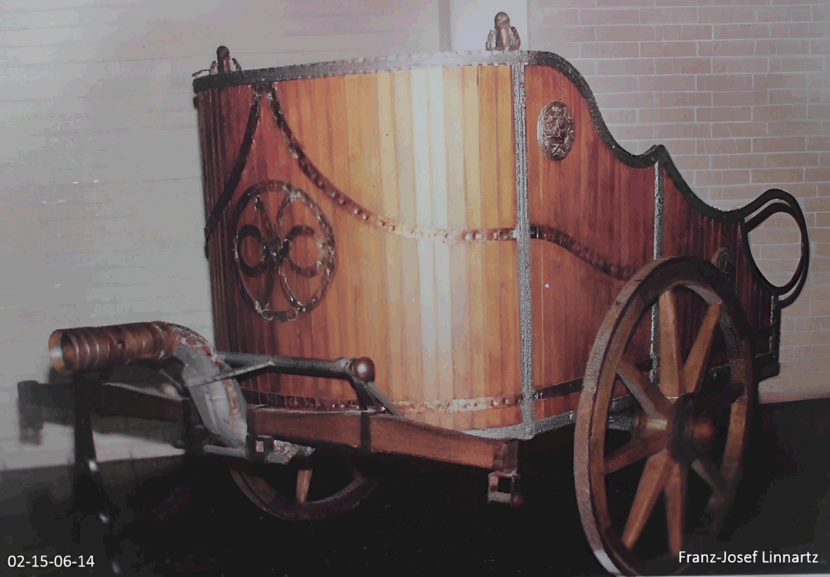 Die Frenzer Schützenbruderschaft beteiligte sich im Jhr 1974 mit einem Nachbau dieses keltisch-römischen Streitwagens am historischen Umzug der Indener Schützenbruder-schaft anläßlich ihres 550jährigen Jubiläums.