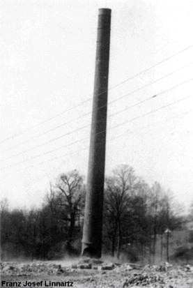 Toen de 42 meter hoge schoorsteen begin 1963 opgeblazen wird, ging een stukje zeer oude geschiedenis van Frenz ten einde.