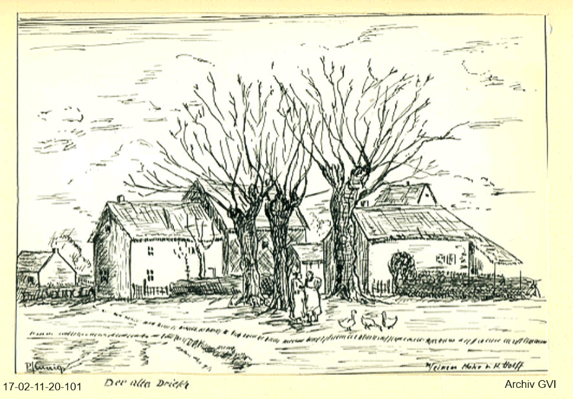 In alter Zeit war der Driesch auch Tagungs- und Vollzugsort des Schöffengerichts. Interessant ist, dass der Gerichtstermin 8 Tage vorher in der Kirche ausgerufen wurde, damit ihn niemand versäumen konnte.