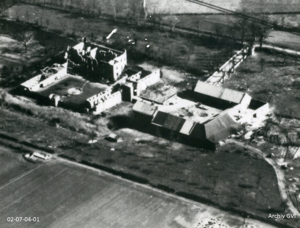 En septembre 1956, la société Rheinbraun-AG en devient propriétaire et décide en 1964 de démolir les ruines. Seule l’aile économique est conservée (Image ci-dessous à droite).