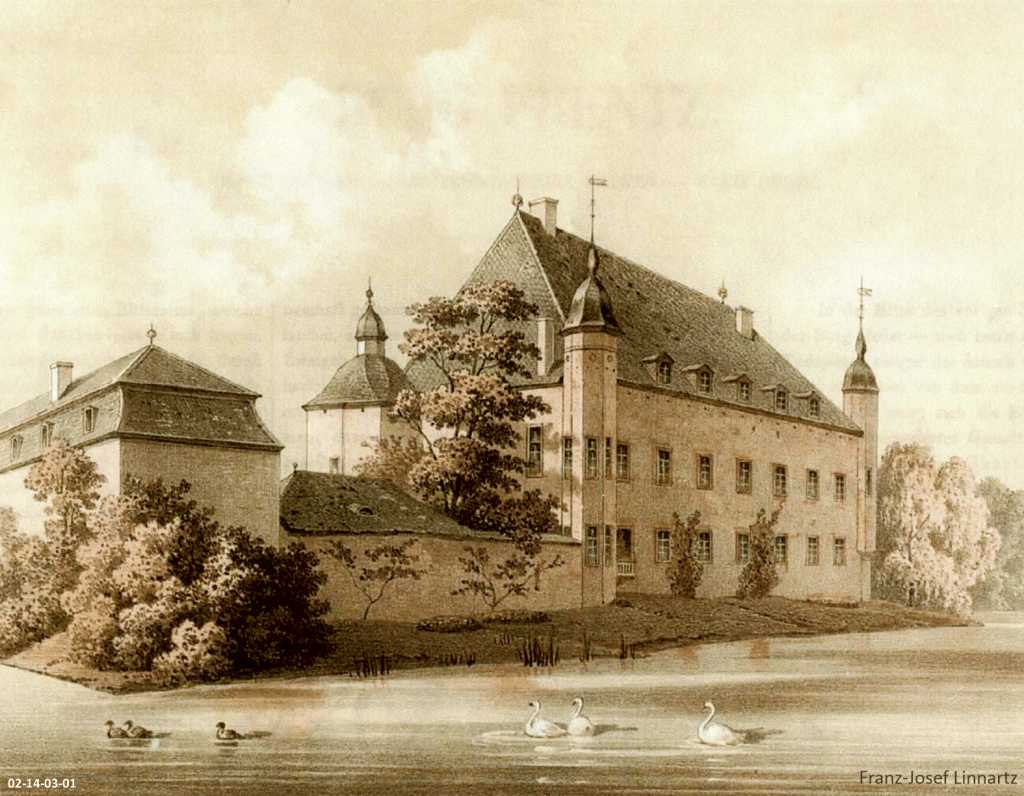 Le château entouré de douves et l’ancienne seigneurie de Frenz restèrent la propriété des princes de Merode jusqu’en 1826. Le domaine fut ensuite hérité par le trésorier J. W. Gräf.